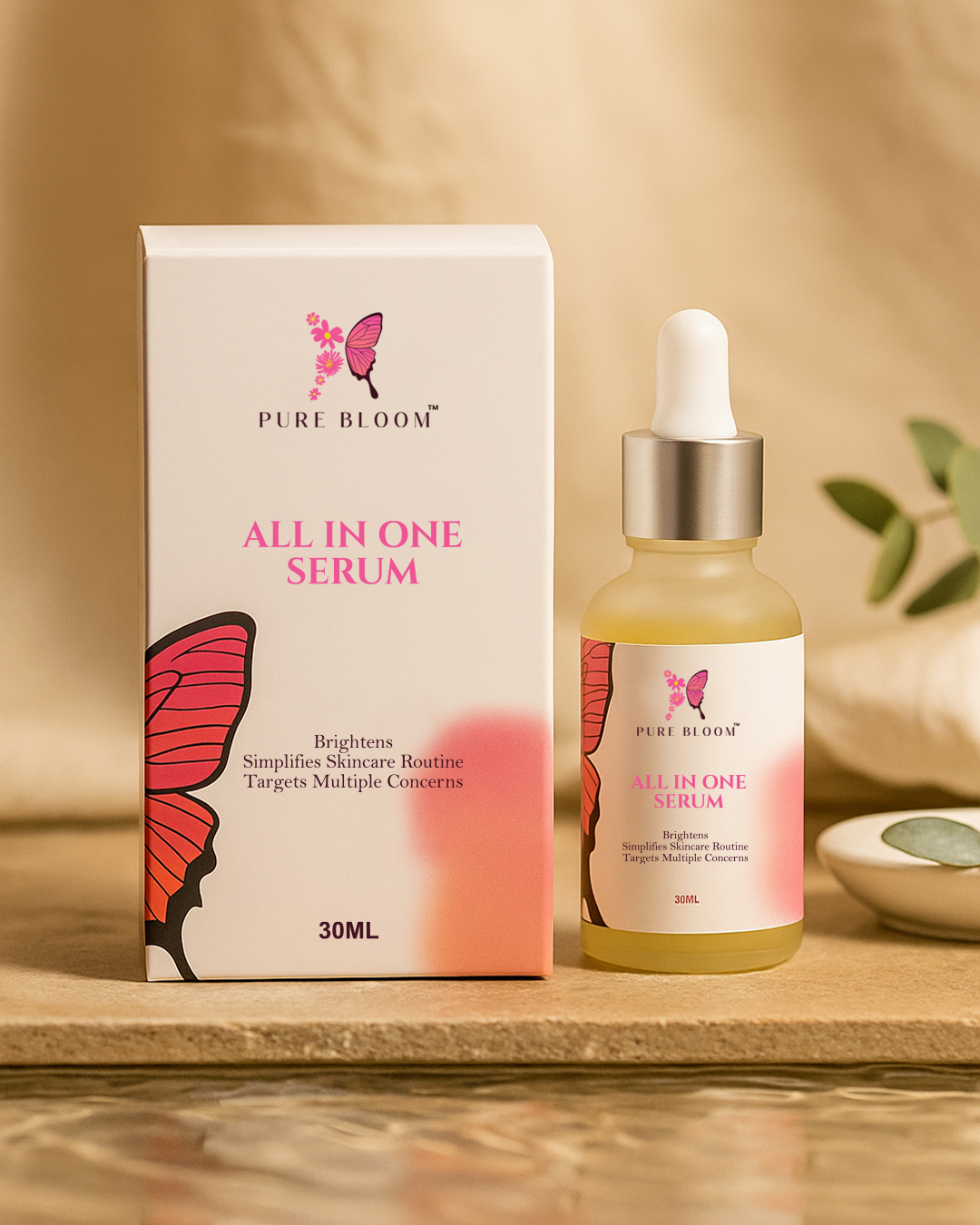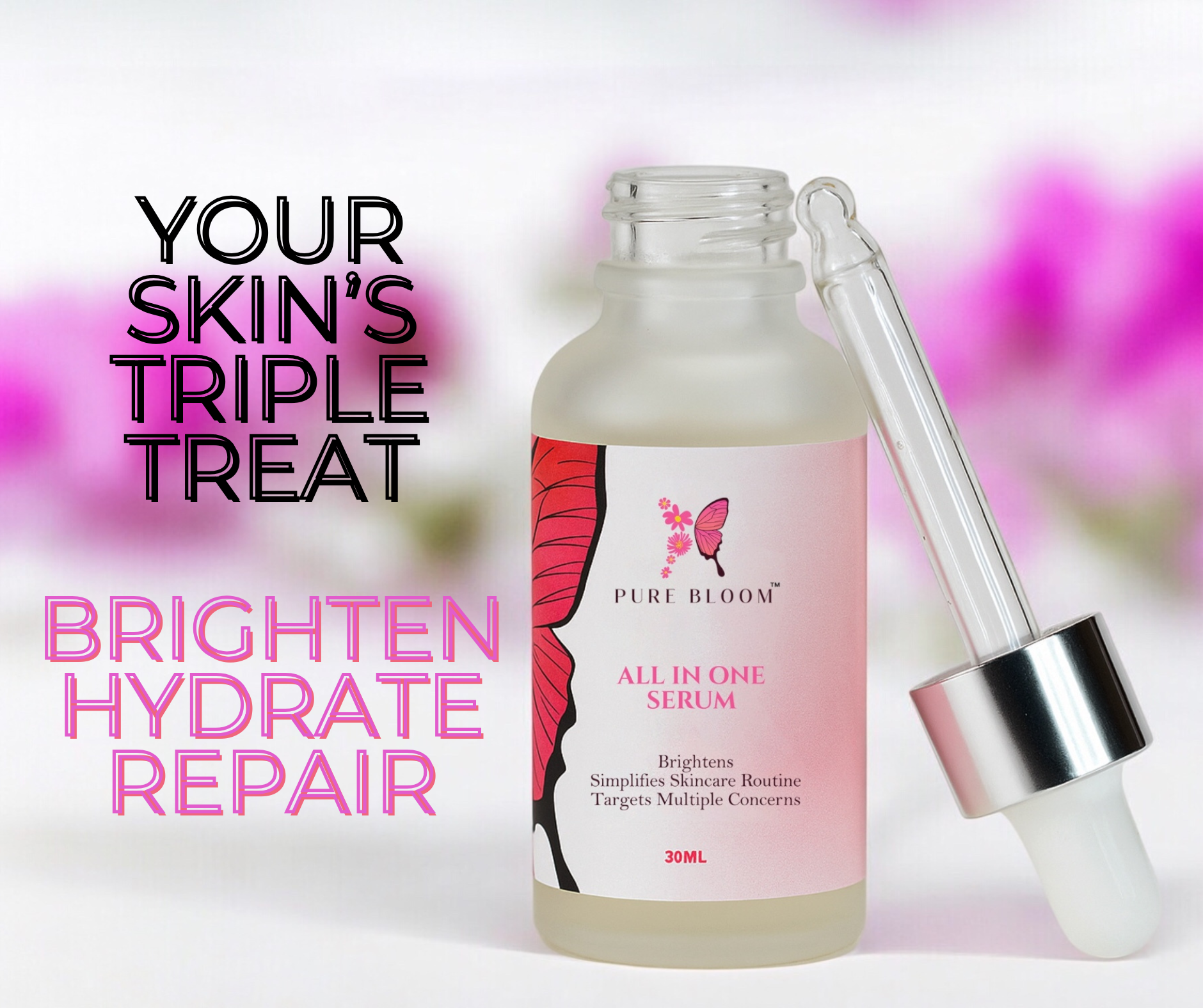 Pure Bloom All in One Serum is a comprehensive formula designed to simplify your skincare routine. This potent serum combines multiple benefits to hydrate, brighten, and rejuvenate your skin. It targets various concerns, such as dullness, uneven texture, and fine lines, promoting a healthier and more radiant complexion with consistent use.