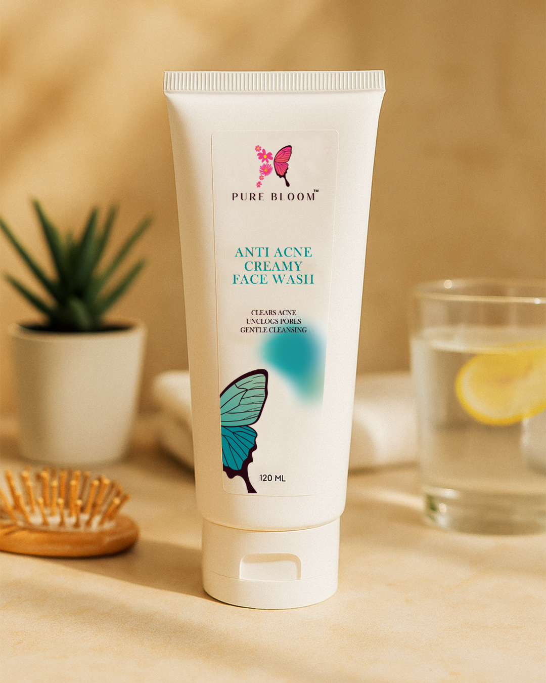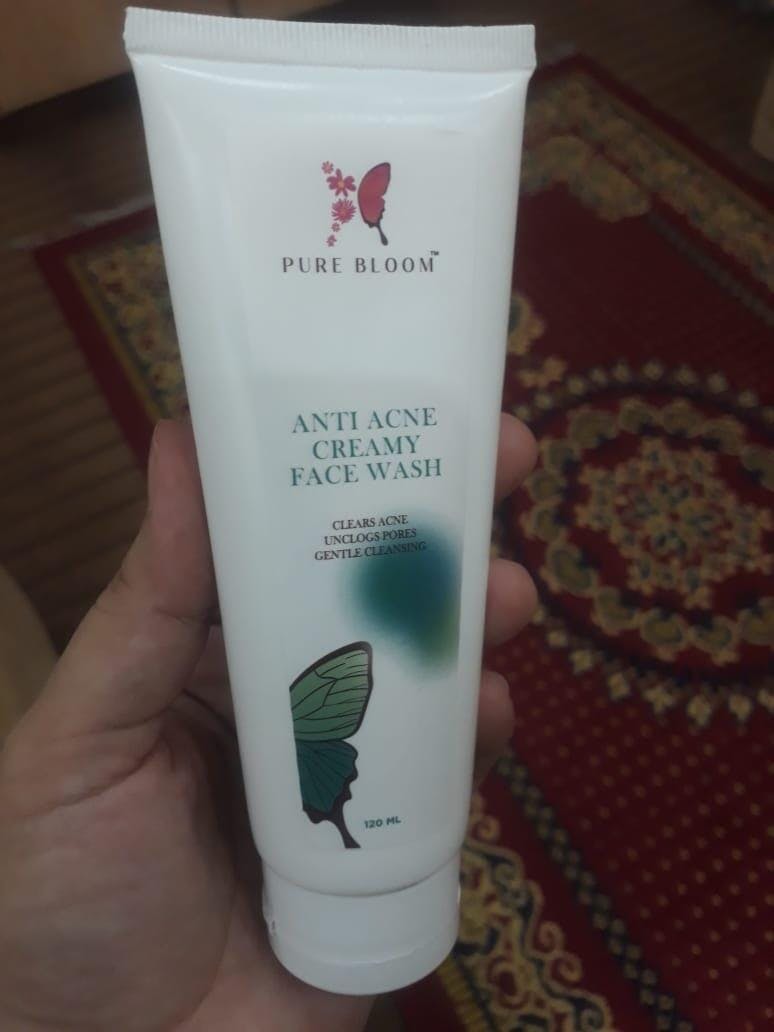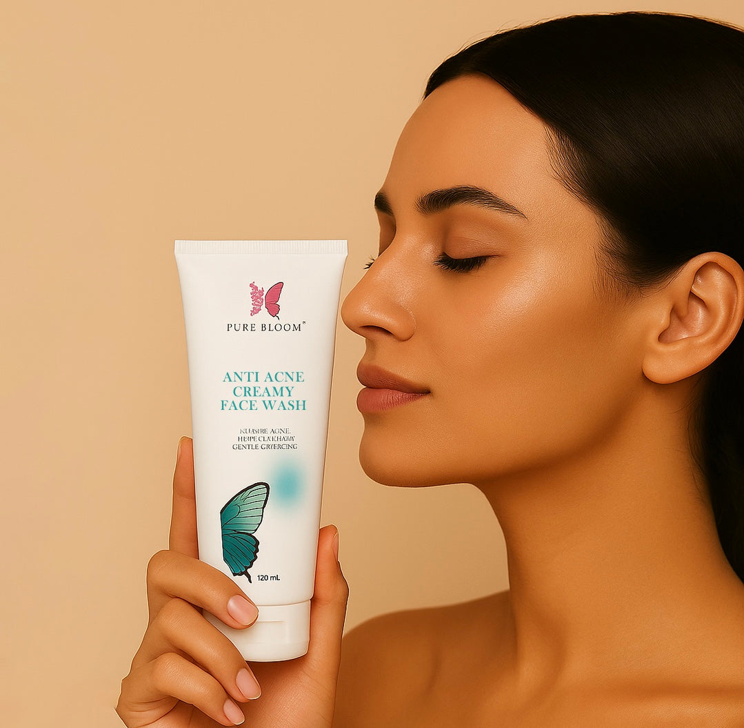 Wet your face with lukewarm water. Apply a small amount of Pure Bloom Creamy Facewash to your hands and gently massage onto your face in circular motions, focusing on areas prone to breakouts. Rinse thoroughly with lukewarm water and pat your skin dry. Use twice daily, morning and evening, for best results. If excessive dryness or irritation occurs, reduce frequency of use.